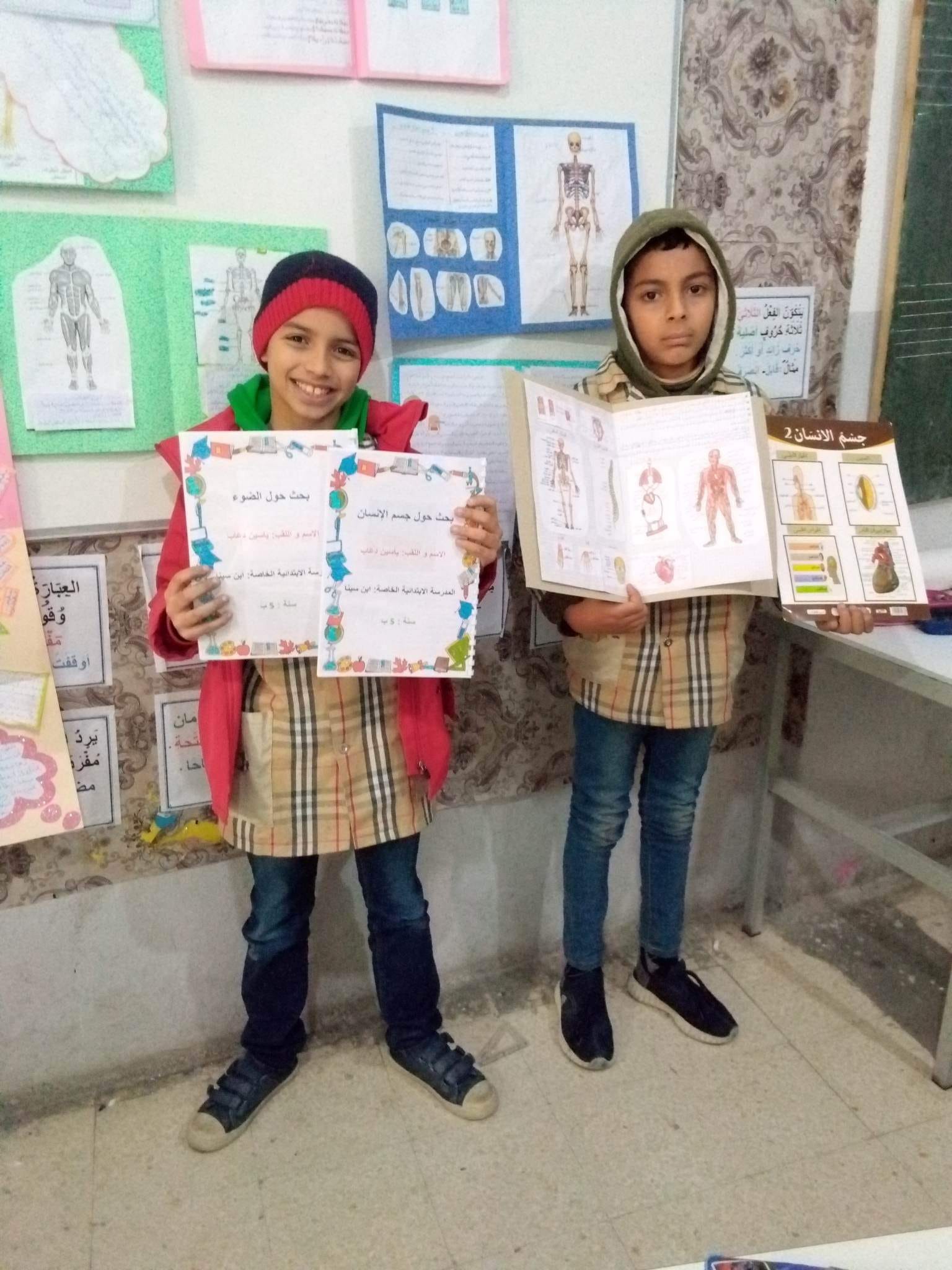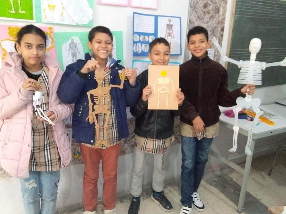 بتأطير السيدة ريم بكوش قام تلاميذ السنة خامسة "ب" بعرض مشاريعهم حول محوري الضوء و جسم الإنسان و تمثلت هذه المشاريع في بحوث و مجسمات للهيكل العظمي